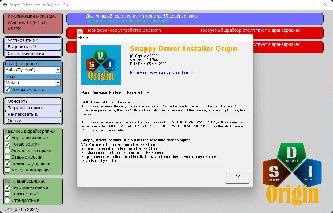 Snappy Driver Installer Origin (SDI Origin) является продолжением популярной серии программ для управления драйверами, предоставляя расширенные возможности без необходимости постоянного интернет-соединения. SDIO выделяется среди аналогов своей высокой скоростью работы, точностью подбора и поддержкой работы с распакованными драйверами. Основная концепция программы — минимизация рисков при установке драйверов, при этом она предлагает пользователю детальную информацию о наличии альтернативных вариантов. В отличие от большинства решений, SDI Origin использует алгоритм, отдающий приоритет более подходящим драйверам, невзирая на наличие новых версий, что способствует стабильной работе системы. Время раздачи программы — 24/7, что обеспечивает постоянную доступность.