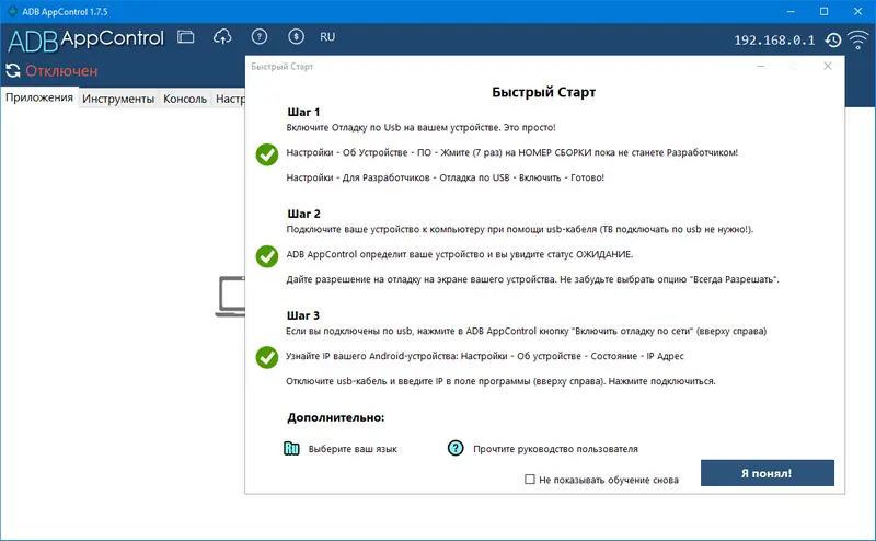 Этот инструмент предназначен для облегчения управления приложениями на Android без необходимости установки специальных прав или сложных настроек. ADB AppControl обладает интуитивно понятным интерфейсом и широким набором возможностей, в том числе отключением, удалением и установкой приложений. Программа совместима с Windows 7, 8/8.1, 10 и 11 как на x32, так и на x64 битных системах. Она отлично подойдет как для профессиональных пользователей, так и для новичков, желающих избавиться от нежелательного софта и настроить устройство под свои нужды.