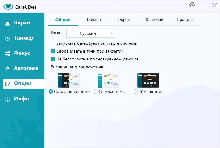 CareUEyes предлагает интуитивно понятный интерфейс и широкие возможности по настройке режима защиты зрения, не перегружая пользователей лишними опциями. Это делает её подходящей как для новых пользователей, так и для продвинутых.