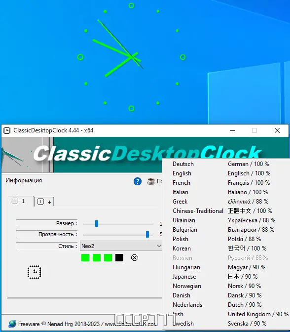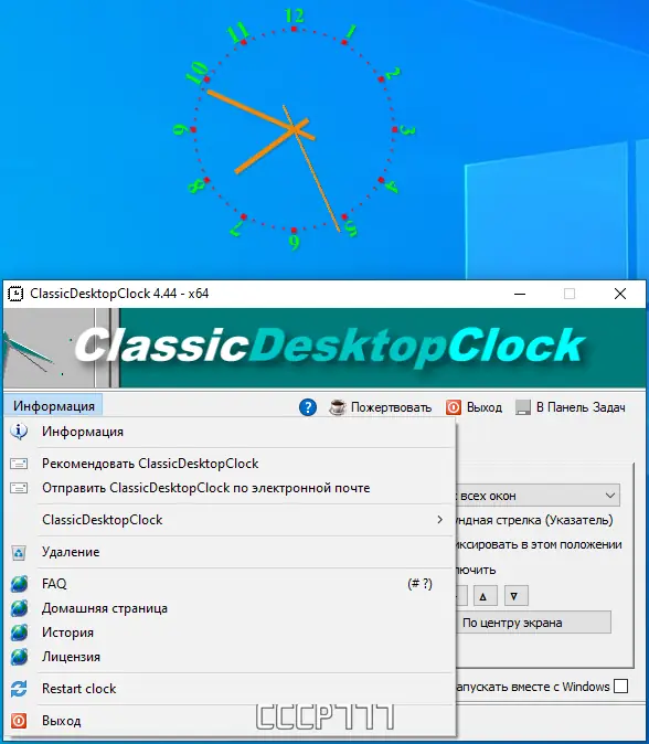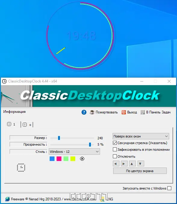 Обратите внимание, что для корректной работы портативной версии рекомендуется создать или скопировать файл ClassicDesktopClock.ini в рабочую директорию.