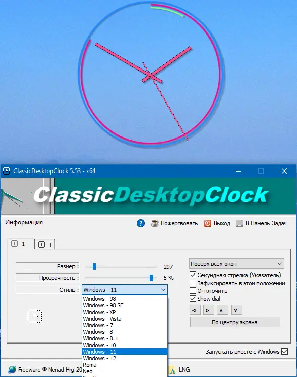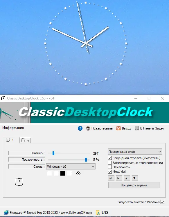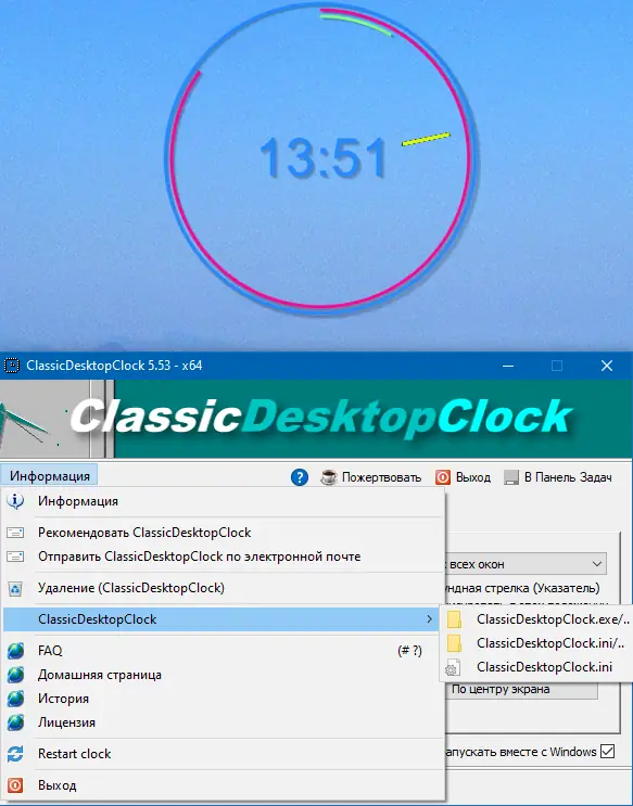 Обратите внимание, что для правильной работы необходимо создать или скопировать файл ClassicDesktopClock.ini в рабочую папку.