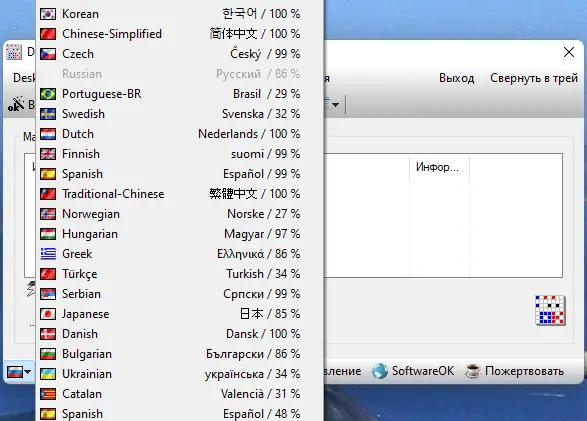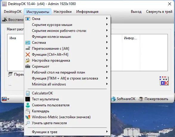 Также программа содержит дополнительные инструменты для рабочего стола, что превращает её в незаменимый помощник как для личного, так и для профессионального использования. Пользователи Windows, часто меняющие разрешения или работающие с проектором, оценят возможность сохранять настройки и быстро восстанавливаться после изменений или отключения устройств. DesktopOK может запускаться автоматически при включении системы, поддерживает многоязычный интерфейс и работу из системного лотка для быстрого доступа.