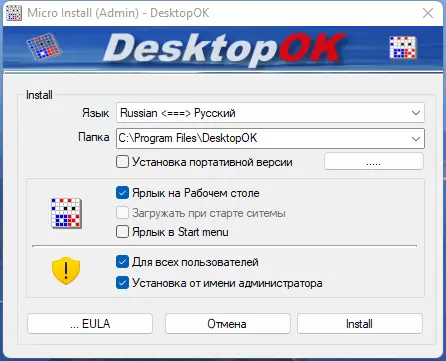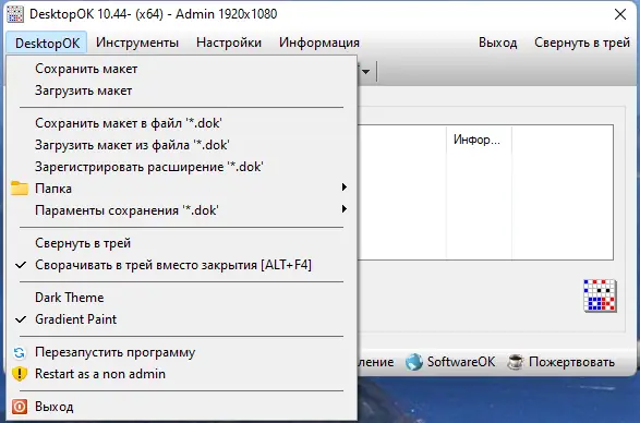 - Запустите файл DesktopOK.exe для начала работы и настройки программы.
