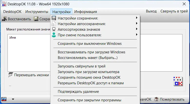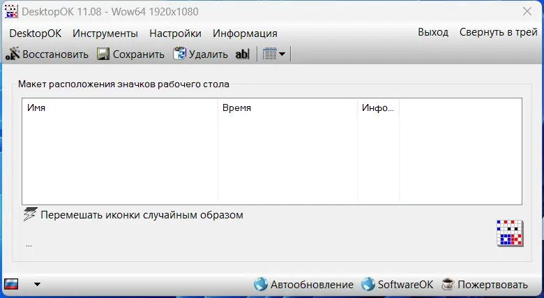 Бесплатная портативная программа для сохранения и восстановления позиции иконок на рабочем столе Windows, которая помогает пользователям сохранять настройки для различных разрешений экранов и быстро восстанавливать порядок значков при необходимости.