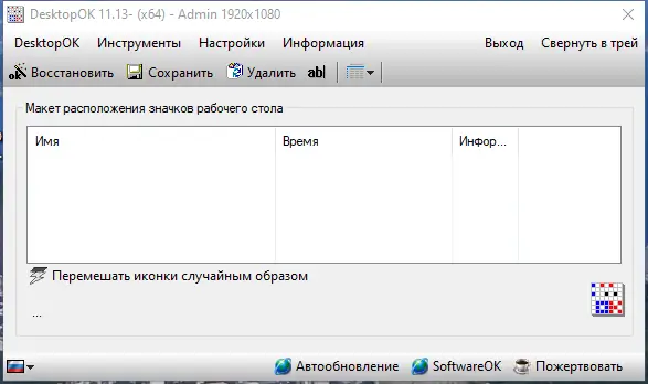 Бесплатная портативная программа для сохранения и восстановления местоположения иконок на рабочем столе Windows.
