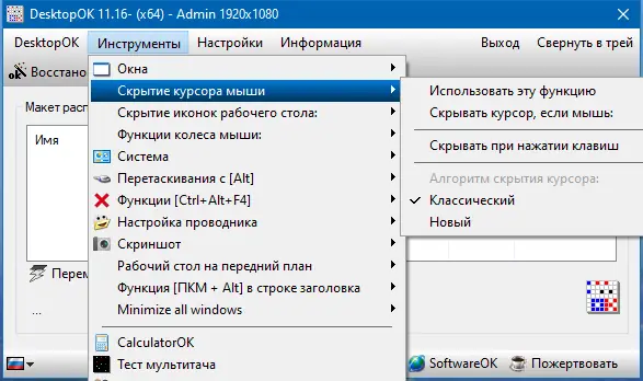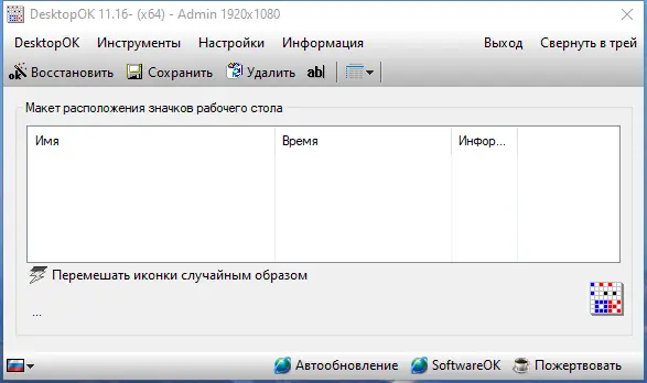 Обратите внимание, что при обновлении или переносе программы необходимо сохранять или создавать файл «DesktopOK.ini» в соответствующем каталоге.