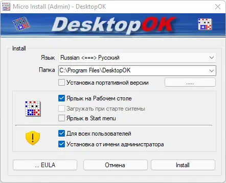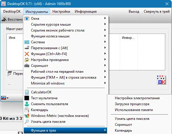 DesktopOK — бесплатная портативная программа для сохранения и восстановления положения иконок на рабочем столе Windows, которая обеспечивает комфортную работу при смене разрешения экрана и работе с проектором.