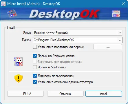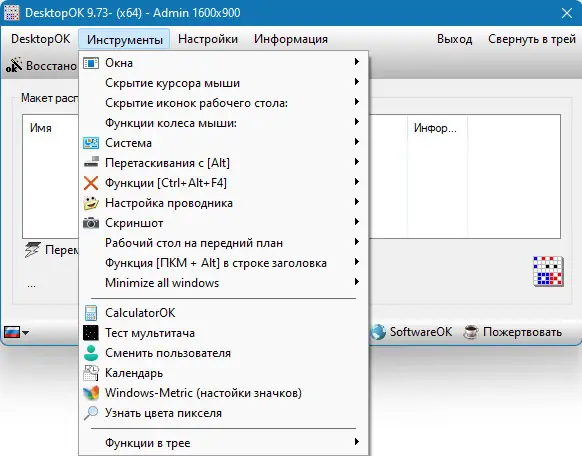- Запустите исполняемый файл DesktopOK.exe или его ярлык для открытия интерфейса.