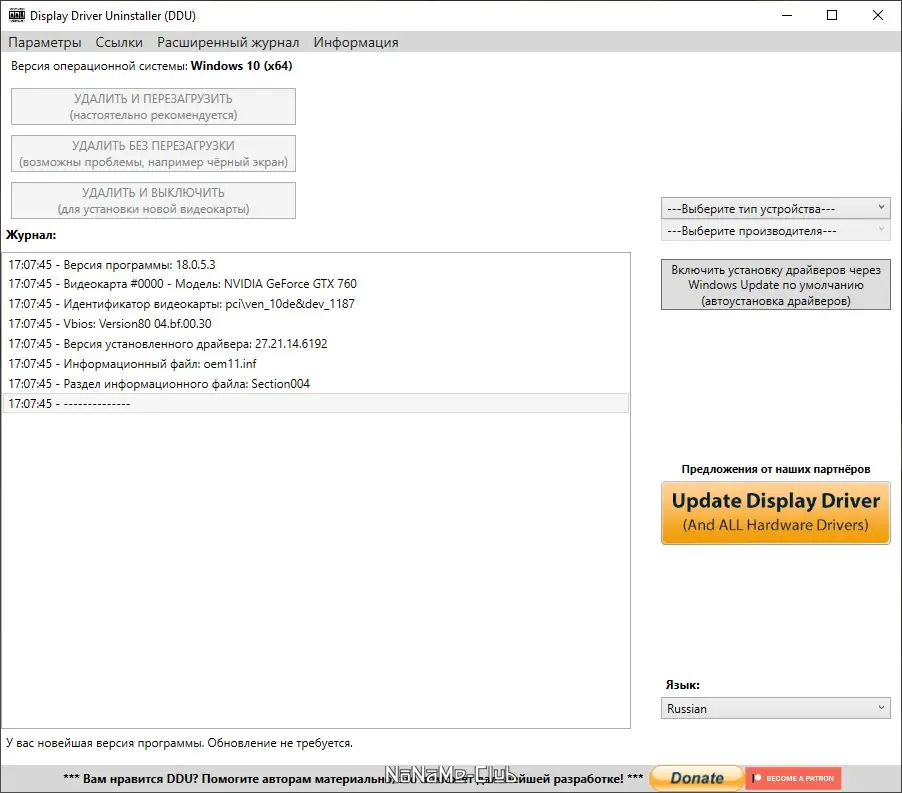 Инструмент особенно необходим при обновлении драйверов видеокарт или устранении неисправностей, связанных с драйверным программным обеспечением. Поддержка русского языка, автоматические обновления и возможность работы через безопасный режим делают его удобным и универсальным решением для пользователей Windows 7, 8/8.1, 10 и 11 на платформах x32 и x64 Bit.