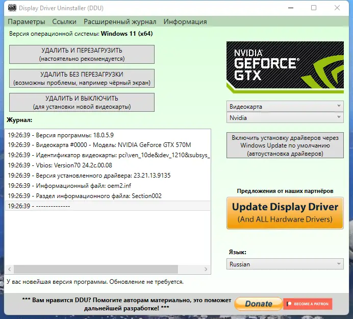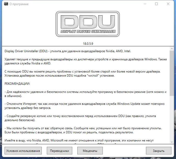 Обратите внимание, что использование в безопасном режиме значительно повышает эффективность удаления драйверов, поэтому рекомендуется запускать утилиту именно в этом режиме.