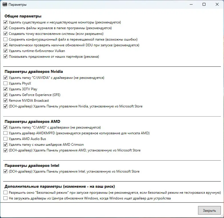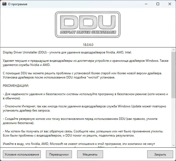 Display Driver Uninstaller предназначен для полного и аккуратного удаления драйверов видеокарт AMD, NVIDIA, Intel и звуковых карт Realtek, Sound Blaster. Программа эффективно удаляет все файлы, папки и записи в реестре, которые остаются после стандартных методов удаления. Она особенно полезна в случаях, когда стандартные средства Windows не справляются, или необходимо максимально тщательно очистить систему перед новой установкой драйверов. После применения DDU система будет как будто переустановлена, без остатков прежних драйверов и связанных с ними настроек. Перед запуском рекомендуется создать точку восстановления системы, чтобы иметь возможность вернуть исходное состояние в случае необходимости.