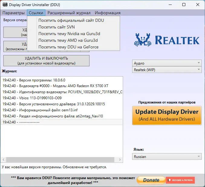 - Запустите программу и следуйте указаниям для полного удаления выбранных драйверов.