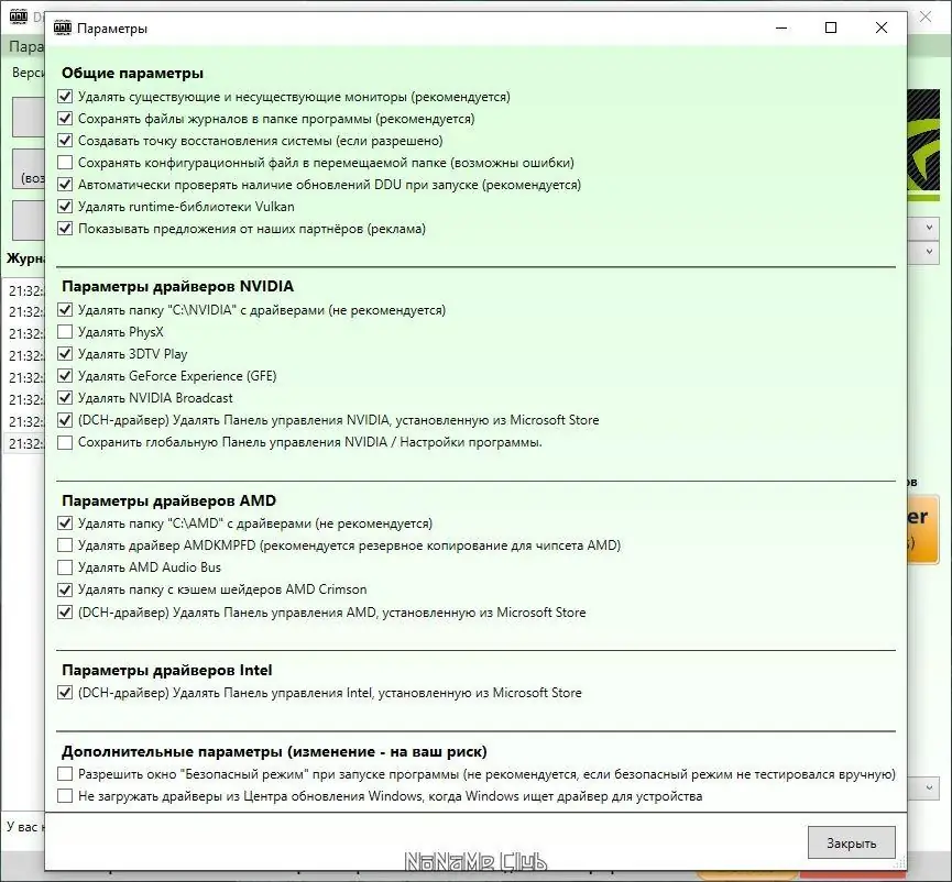 - Полное и бесследное удаление драйверов видеокарт AMD, NVIDIA, Intel и драйверов Realtek/Sound Blaster.