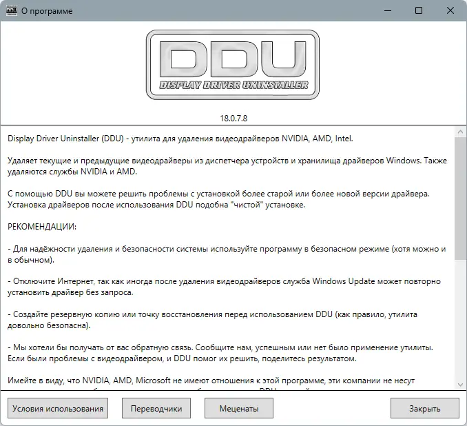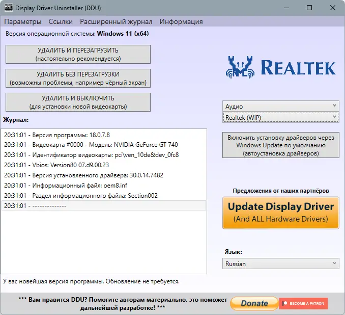 Использование Display Driver Uninstaller обеспечивает эффективное и безопасное удаление драйверов, что помогает предотвратить конфликты и сбои системы. Программа поддерживает русском языке и имеет встроенную функцию автоматической проверки обновлений.