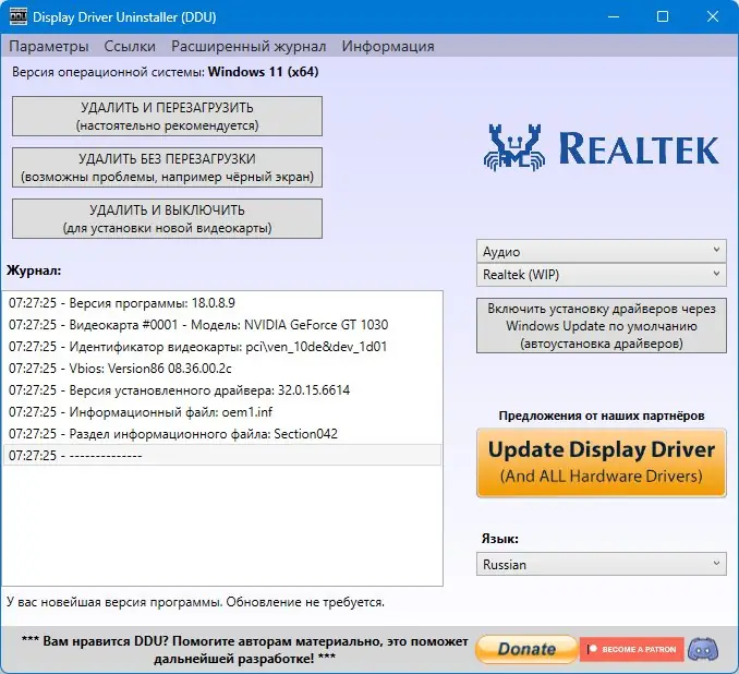 Для тех, кто хочет скачать дисплейный драйвер для своей системы или обновить существующие драйверы без лишних проблем, утилита предоставляет удобный способ быстрого удаления старых драйверов и подготовки системы к новой установки.