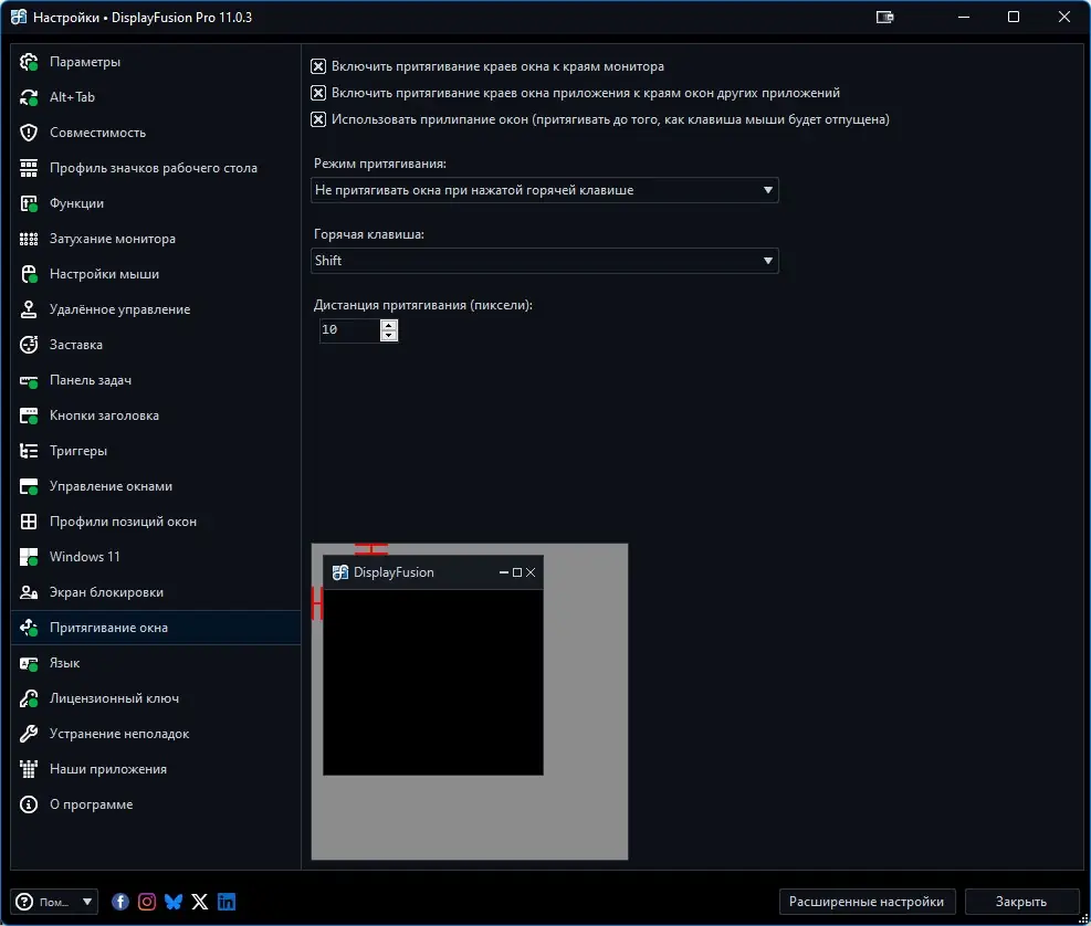 - Поддержка горячих клавиш для быстрого управления окнами и настройками