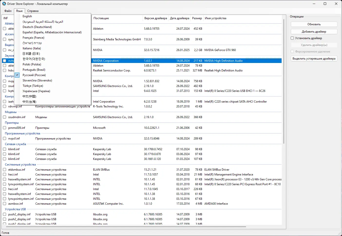 Driver Store Explorer — это легкий, портативный инструмент, предоставляющий наиболее простой способ работы с драйверным хранилищем Windows. Он позволяет выполнять операции перечисления, добавления, установки, удаления и принудительного удаления драйверных пакетов. Особенно актуально использование этого софта для очистки устаревших версий драйверов, что способствует освобождению ценного пространства на диске и обеспечивает более стабильную работу системы. Помимо этого, программа поддерживает использование как онлайн, так и офлайн хранилищ драйверов, а также экспортирует списки пакетов в CSV для удобства ведения учета.