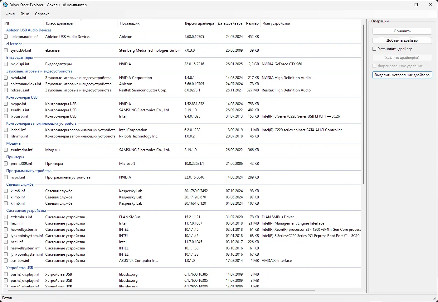 - Обнаружение и удаление устаревших или неиспользуемых драйверов