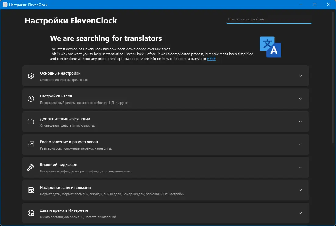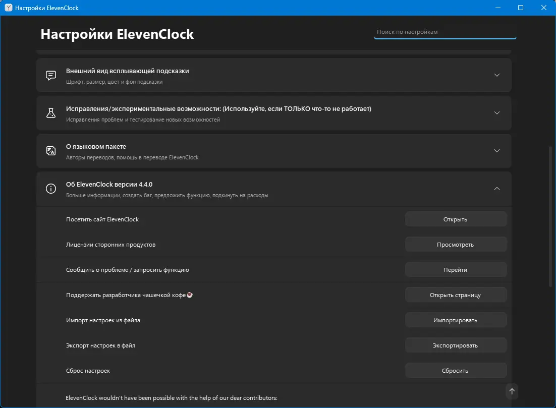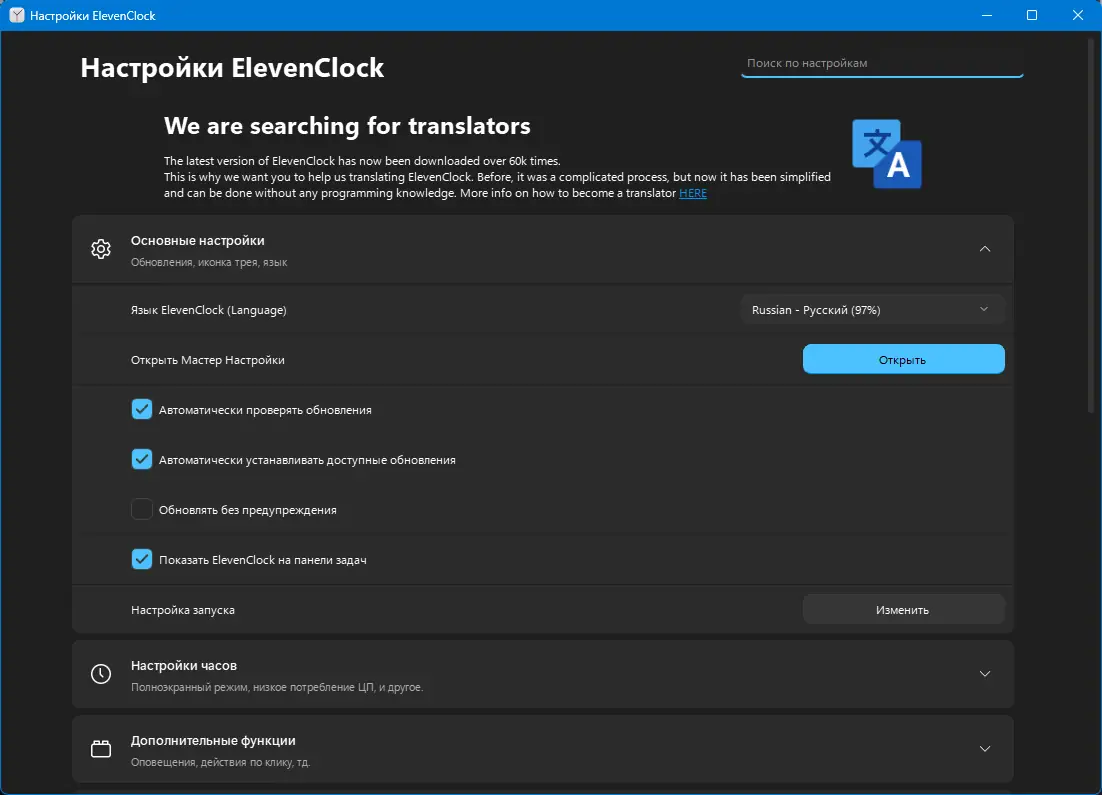 - Отображение часов в полноэкранных приложениях и возможность скрывать их по необходимости.