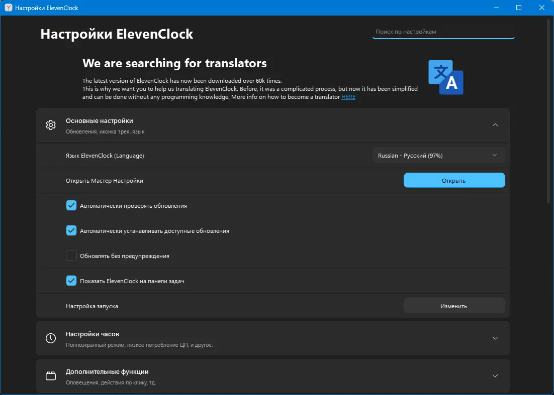 - После установки откройте настройки программы для индивидуальной настройки часов под ваши предпочтения.