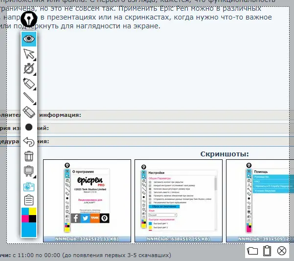 Epic Pen – утилита для рисования на экране под управлением Windows, совместимая с версиями Windows 7, 8/8.1, 10 и 11. Поддерживает архитектуру x32 и x64 Bit, благодаря чему подходит для большинства современных систем. Программа позволяет пользователю с помощью инструментов «карандаш», «маркер» и стерки делать пометки, выделения или исправления прямо во время работы с любыми приложениями, окнами или файлами. Независимо от сложности задачи, она быстро запускается и занимает минимальную память, что делает её удобной и эффективной в использовании.