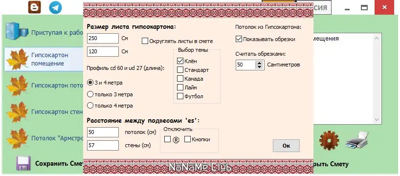 - Запустить программу и выполнить первичные настройки, при необходимости указав стоимость материалов в российских рублях или гривнах.