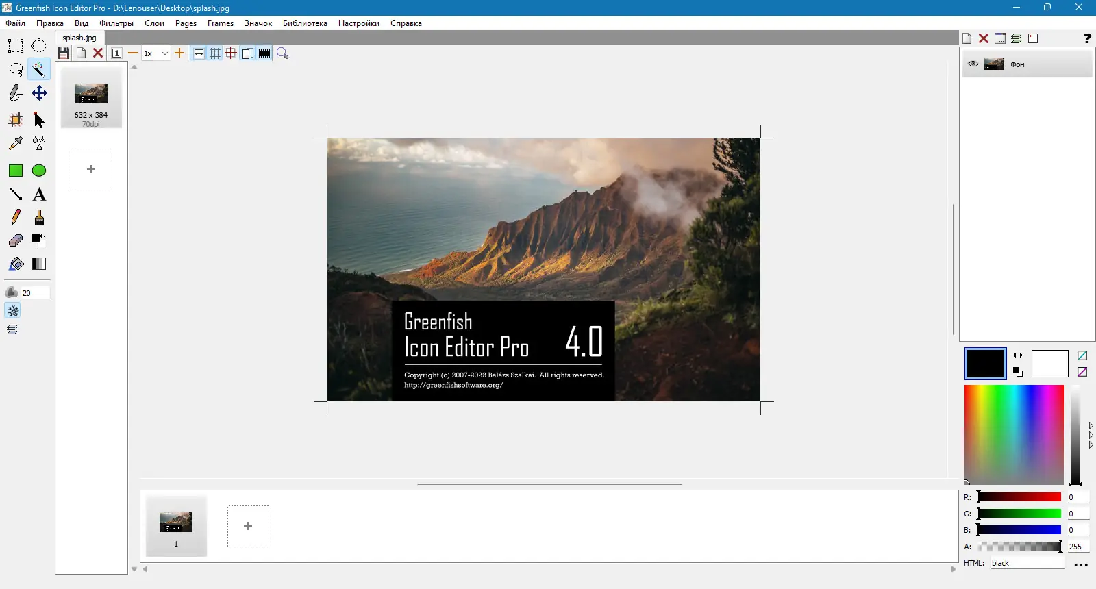 Для комфортной работы с Greenfish Icon Editor потребуется минимальный набор ресурсов.