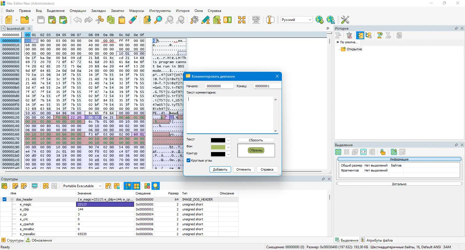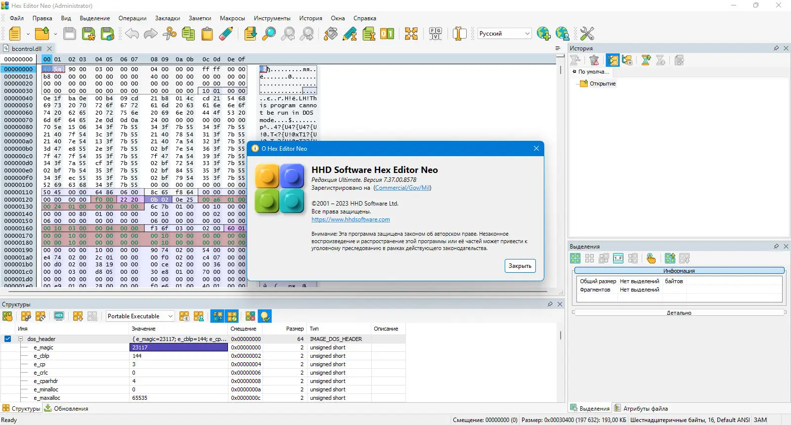 Hex Editor Neo — мощный редактор шестнадцатеричных и бинарных файлов, предназначенный для работы под Windows. Данная программа отличается многооконным интерфейсом и богатым функционалом для просмотра, редактирования, поиска и анализа данных в файлах любой величины. Обладая расширенными возможностями, она идеально подходит для профессиональной работы с большими файлами и дисками, обеспечивая удобство и эффективность в процессе обработки информации.
