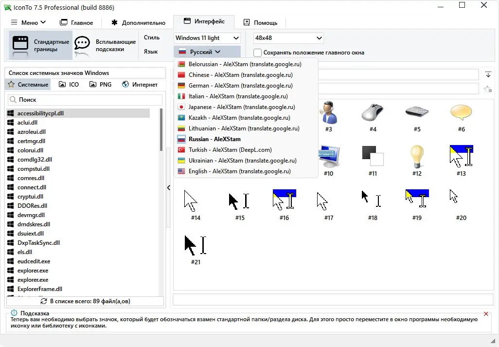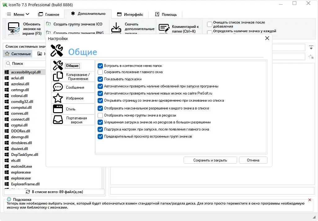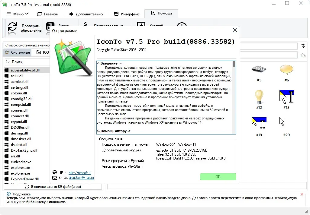 - Работа с форматами ICO, PNG, JPG, DLL, EXE и куросры (CUR, ANI)