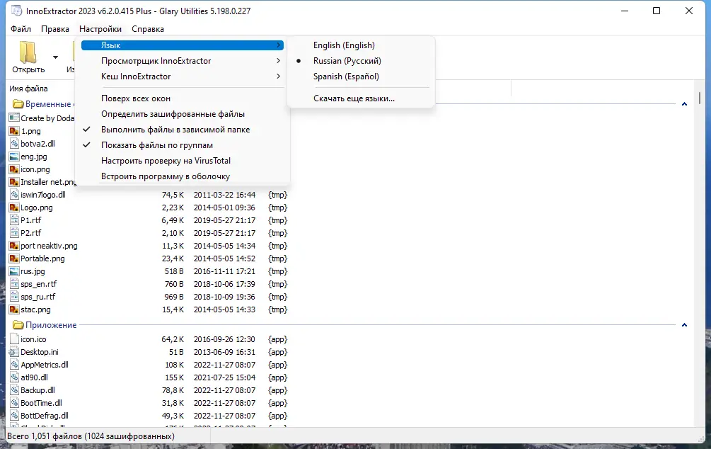 - Возможность извлекать файлы без запуска установки и сохранять их в удобном формате.