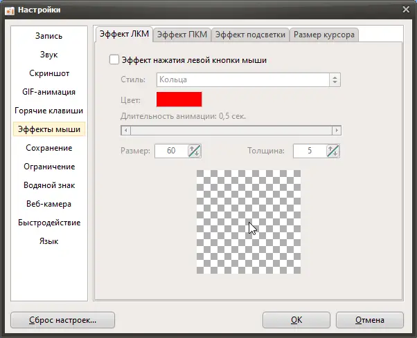 - Эффекты нажатия кнопок мыши и подсветка курсора