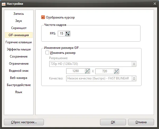 - Запись и кодирование видео с экрана во все популярные форматы, включая GIF