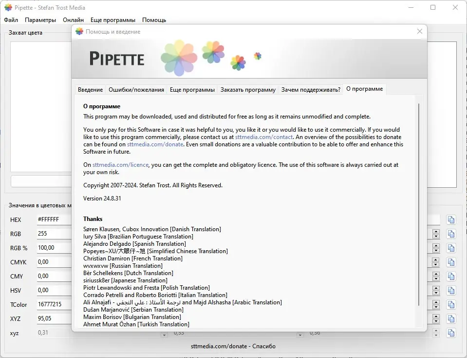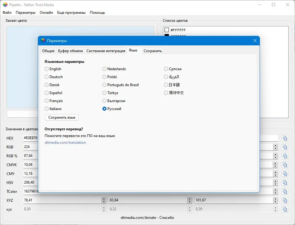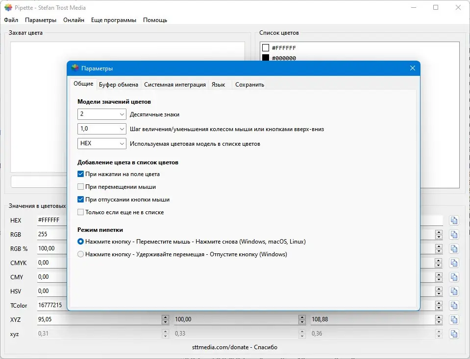 Данный продукт представляет собой универсальный дозатор цвета, который позволяет быстро и точно определить цвет с любого элемента на экране. Он способен преобразовать выбранный цвет из одной модели в другую, а также изменить оттенки, что расширяет творческие возможности пользователя. Благодаря встроенной палитре можно сохранять полученные цвета, формировать список использованных оттенков и работать с профилями, что делает работу с цветом максимально удобной и структурированной. Инструмент рассчитан на работу в системах Windows 7, 8/8.1, 10 и 11 на платформах x32 и x64 Bit.
