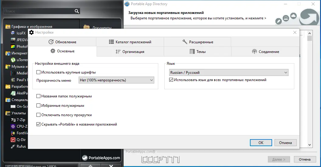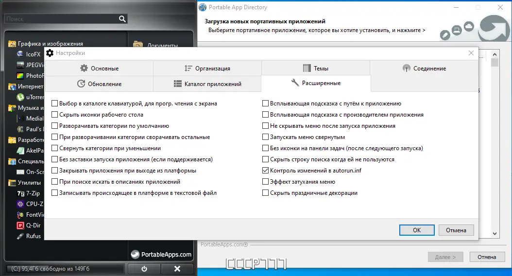 - Управление портативными приложениями с помощью удобного меню и категории.