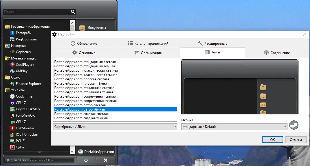 - Удобное меню с настройками, темами и возможностью организации приложений по папкам и категориям.