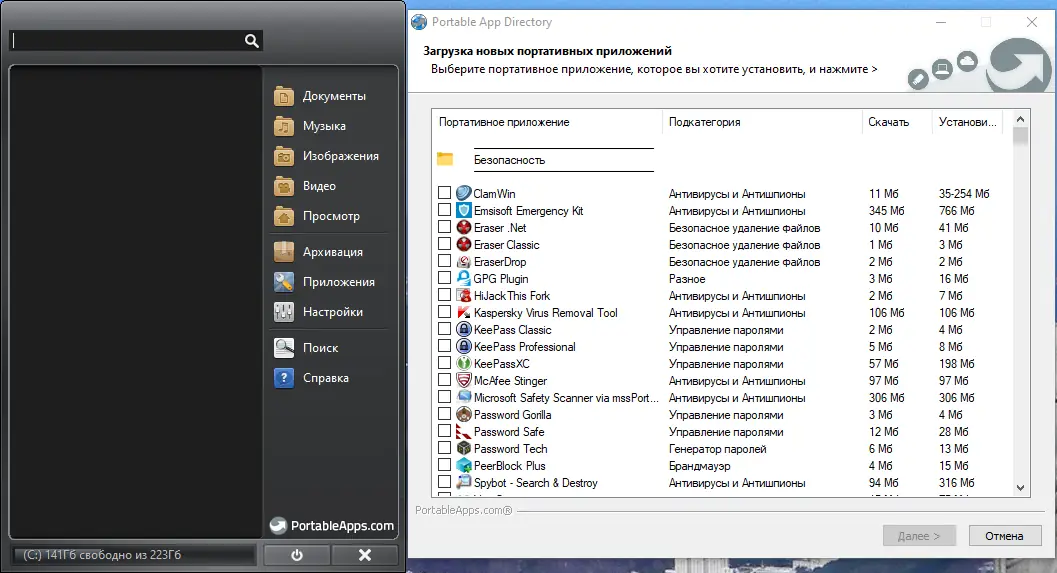 PortableApps.com Platform представляет собой универсальную решение для управления портативными приложениями, которое работает без инсталляции в систему, оставляя операционную систему чистой и свободной от лишнего мусора. После установки вы получите удобное меню с категориями, где сможете выбрать нужные программы для распаковки и запуска. Также доступна возможность создавать собственные меню и наборы программ, добавляя в них избранные приложения и папки для организации. Процесс установки предусматривает выбор режимов работы: обычный, распаковка в облако, установка для текущего пользователя или для всех. Управление приложениями осуществляется с помощью простого интерфейса, где необходимо лишь отметить галочками интересующие программы — они автоматически загрузятся и распакуются. Благодаря современным функциям, программная платформа позволяет легко ориентироваться в большом ассортименте программ и быстро находить нужные инструменты.