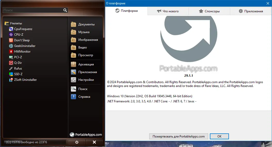 PortableApps.com Platform — это универсальная платформа для организации портативных программ, которая позволяет использовать ваши приложения без необходимости их установки в систему. Она предоставляет удобное меню для управления программами, создания собственных наборов и быстрого доступа к нужным инструментам, что особенно удобно при использовании нескольких устройств или при необходимости избежать засорения системы лишним мусором и записями.