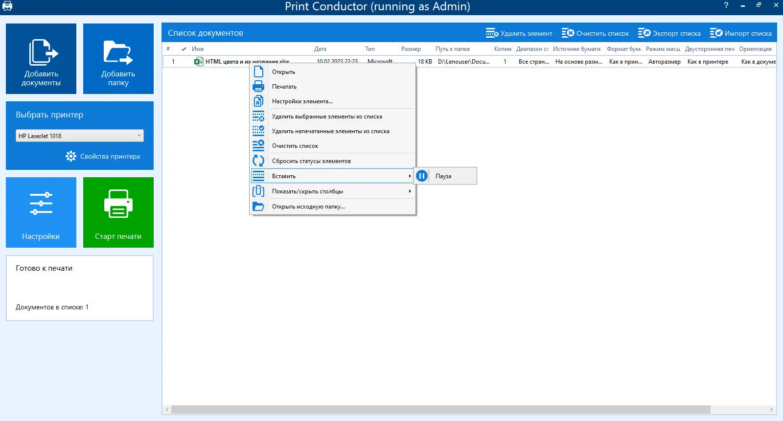 Интуитивный пользовательский интерфейс и богатый функционал позволяют легко создавать списки документов, сортировать их по различным параметрам, задавать настройки печати и контролировать весь процесс. Благодаря поддержке всех популярных типов принтеров — как локальных, так и сетевых, и виртуальных — Print Conductor обеспечивает гибкость и удобство эксплуатации при выполнении массовых заданий в автоматическом режиме.