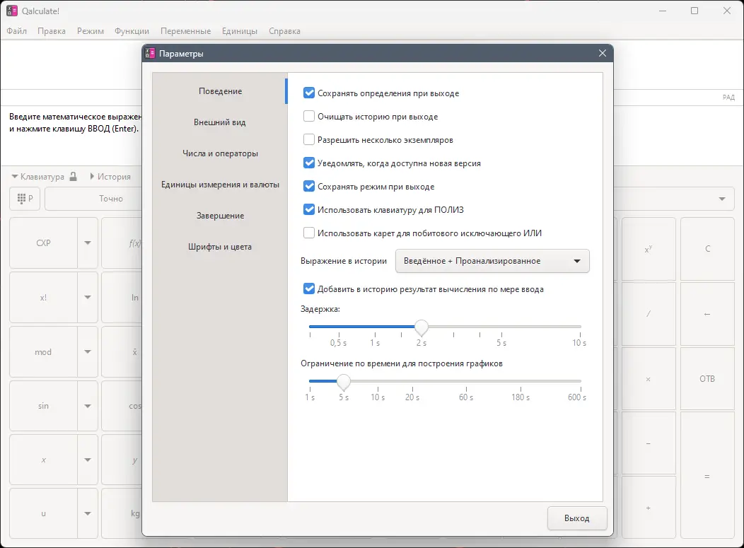 Qалютор обладает широким спектром дополнительных возможностей и гибких настроек, что делает его универсальным инструментом для решения различных задач, связанных с математическими расчетами.