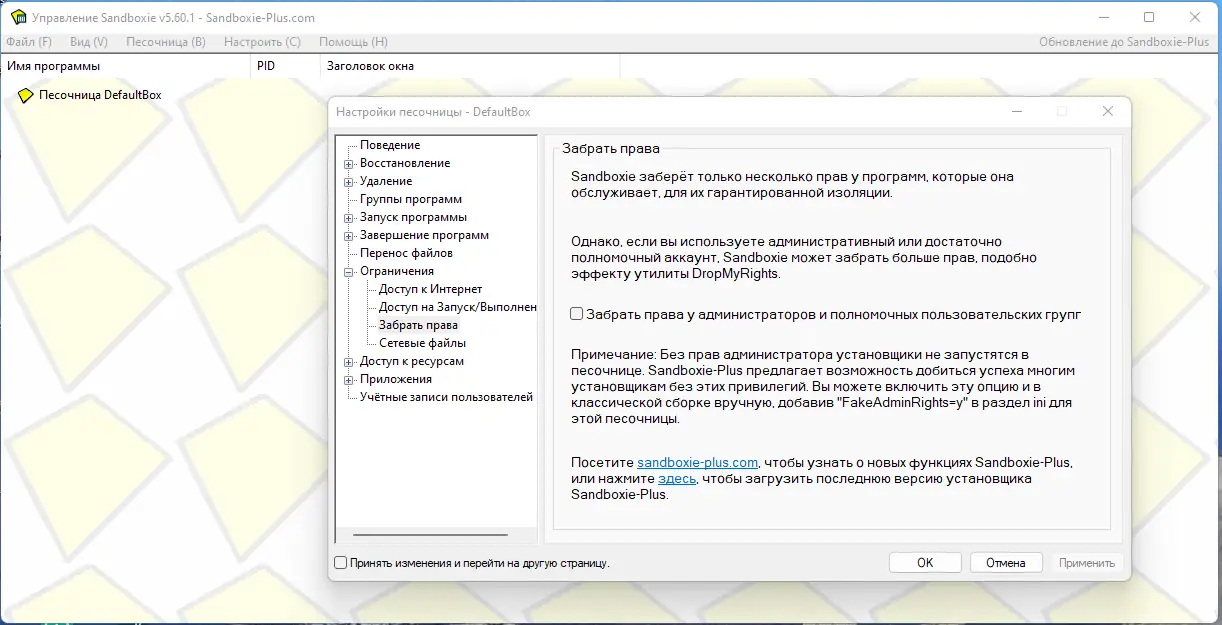 Sandboxie — утилита для контроля работы программ и защиты системы от нежелательных изменений, которая создает безопасное виртуальное пространство (песочницу) для запуска приложений.