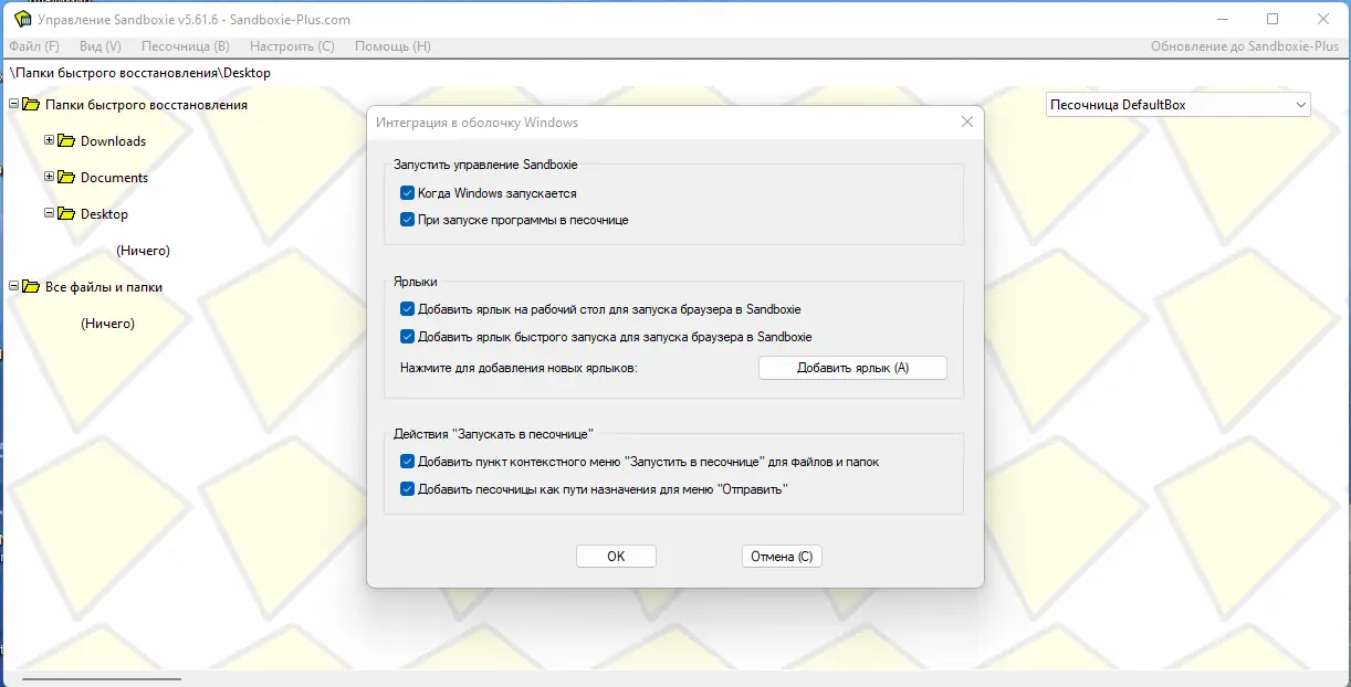 Основные возможности включают защиту при работе в интернете, контроль за почтовым клиентом Outlook Express, а также возможность настройки работы с любыми браузерами. После установки все изменения происходят внутри песочницы, что позволяет выполнить откат системы к исходному состоянию или полностью очистить следы работы приложений.