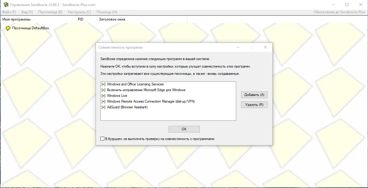 Sandboxie — это универсальное решение для защиты вашего компьютера, позволяющее изолировать работу приложений и контролировать их действия в системе. Бесплатная версия доступна для загрузки, а программу можно скачать через торрент или напрямую с сайта разработчика. Поддерживается на операционных системах Windows 7, 8/8.1, 10 и 11 как 32-х, так и 64-битных версий.