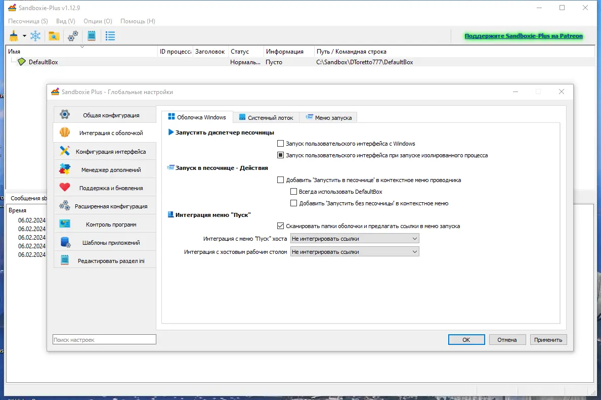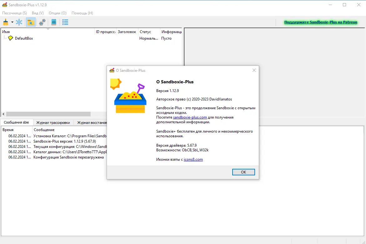 Продолжение проекта Sandboxie с открытым исходным кодом — это утилита для контроля за выполнением программ и взаимодействием их с системой. После установки все действия приложений проходят через специальное «песочницу», что позволяет легко удалять следы работы программ или вирусов, проникших на компьютер, например, через браузер или почтовые клиенты. Благодаря этой системе можно безопасно запускать подозрительные или тестируемые программы, не опасаясь за целостность операционной системы.