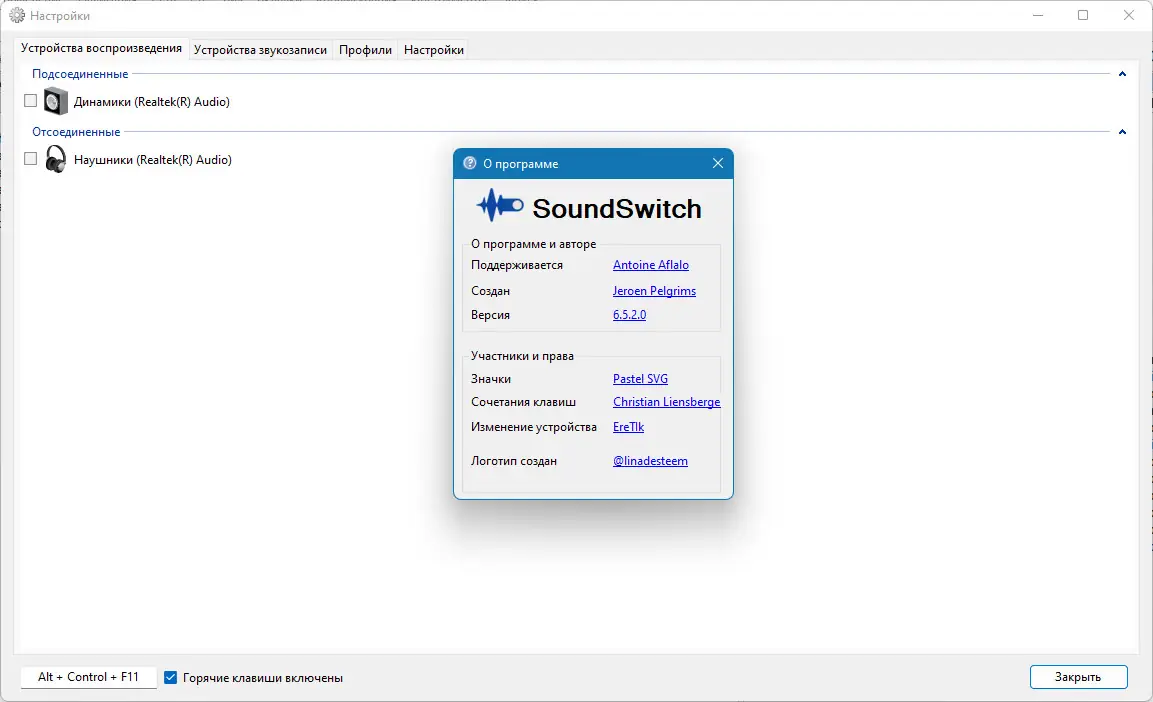 Программа совместима с 32- и 64-битными версиями Windows 7, 8/8.1, 10 и 11. Использование горячих клавиш позволяет управлять звуковыми устройствами быстро и без лишних действий, а настройка уведомлений помогает всегда быть в курсе текущего активного устройства.