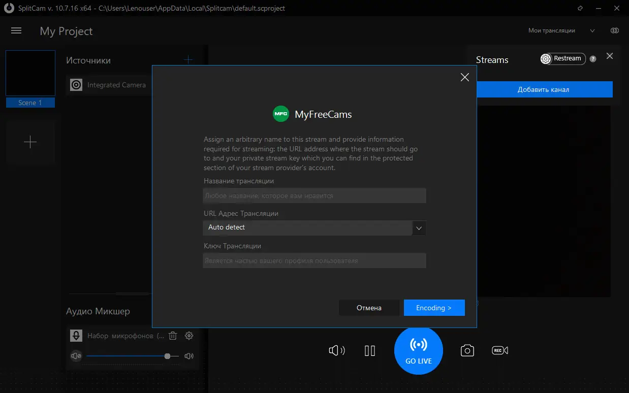 - Потоковая передача на сервисы Livestream, Ustream, Justin.tv и TinyChat