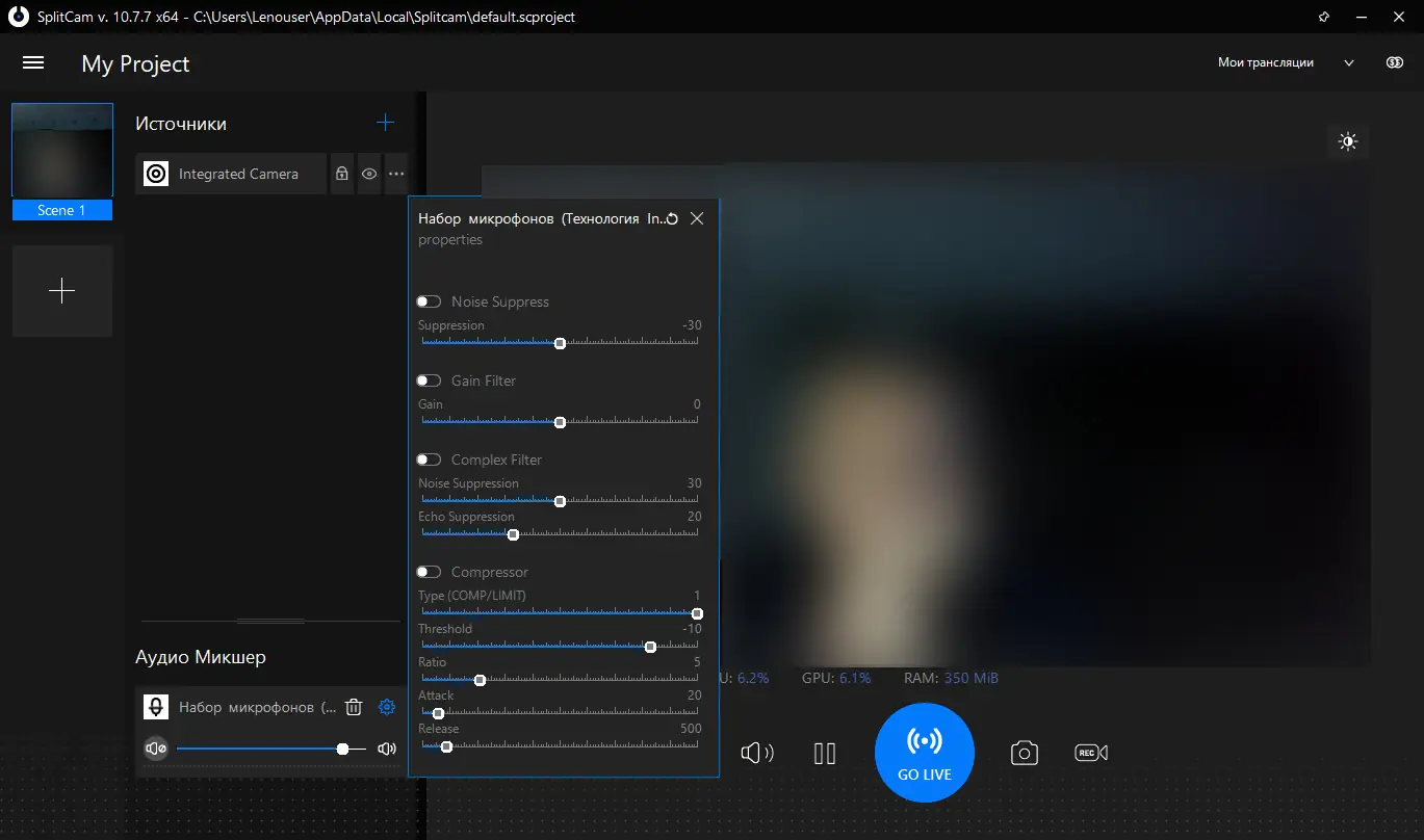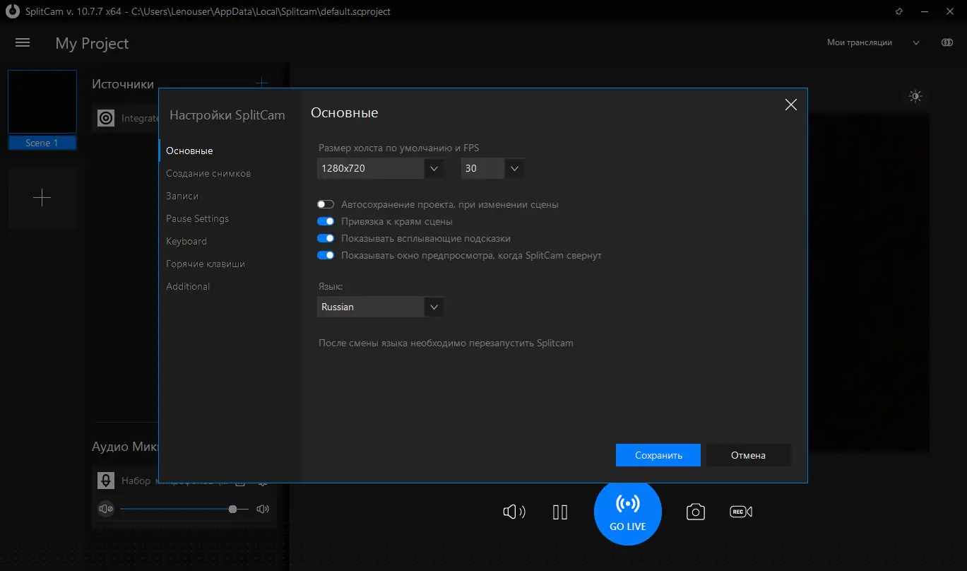- После завершения установки перезагрузите компьютер и настройте параметры видеопотока в интерфейсе SplitCam.