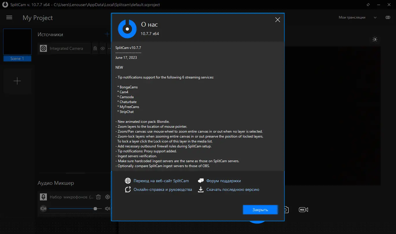 Процесс установки SplitCam не вызывает особых сложностей и подходит для пользователей с разным уровнем навыков. Перед началом рекомендуется убедиться, что у вас установлены актуальные драйверы видеокарты и операционная система Windows 7, 8/8.1, 10, 11 — 32 и 64 бит.