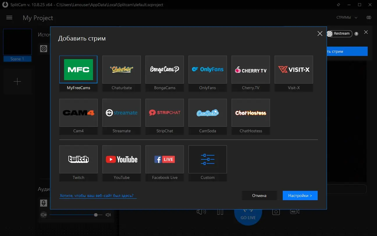 - Трансляция потокового видео на такие платформы, как Livestream, Ustream и Justin.tv за несколько кликов