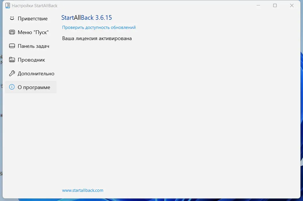 Обратите внимание, что после обновления версии StartAllBack рекомендуется перезагрузить операционную систему для исправления возможных визуальных артефактов в меню Пуск.
