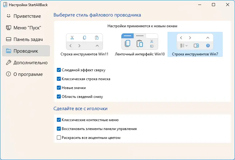 StartAllBack — это эффективное решение для тех, кто хочет вернуть привычный интерфейс Windows 7 в Windows 11 или Windows 10. Программа легко настраивается и не требует дополнительных утилит, что делает её еще более привлекательной.